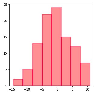 number_groups et bin_width sont calculés sur la base des données d’entrée. J’ai ensuite écrit une boucle pour tracer les barres, une couleur à la fois, et mettre les tics et les légendes à la toute fin.